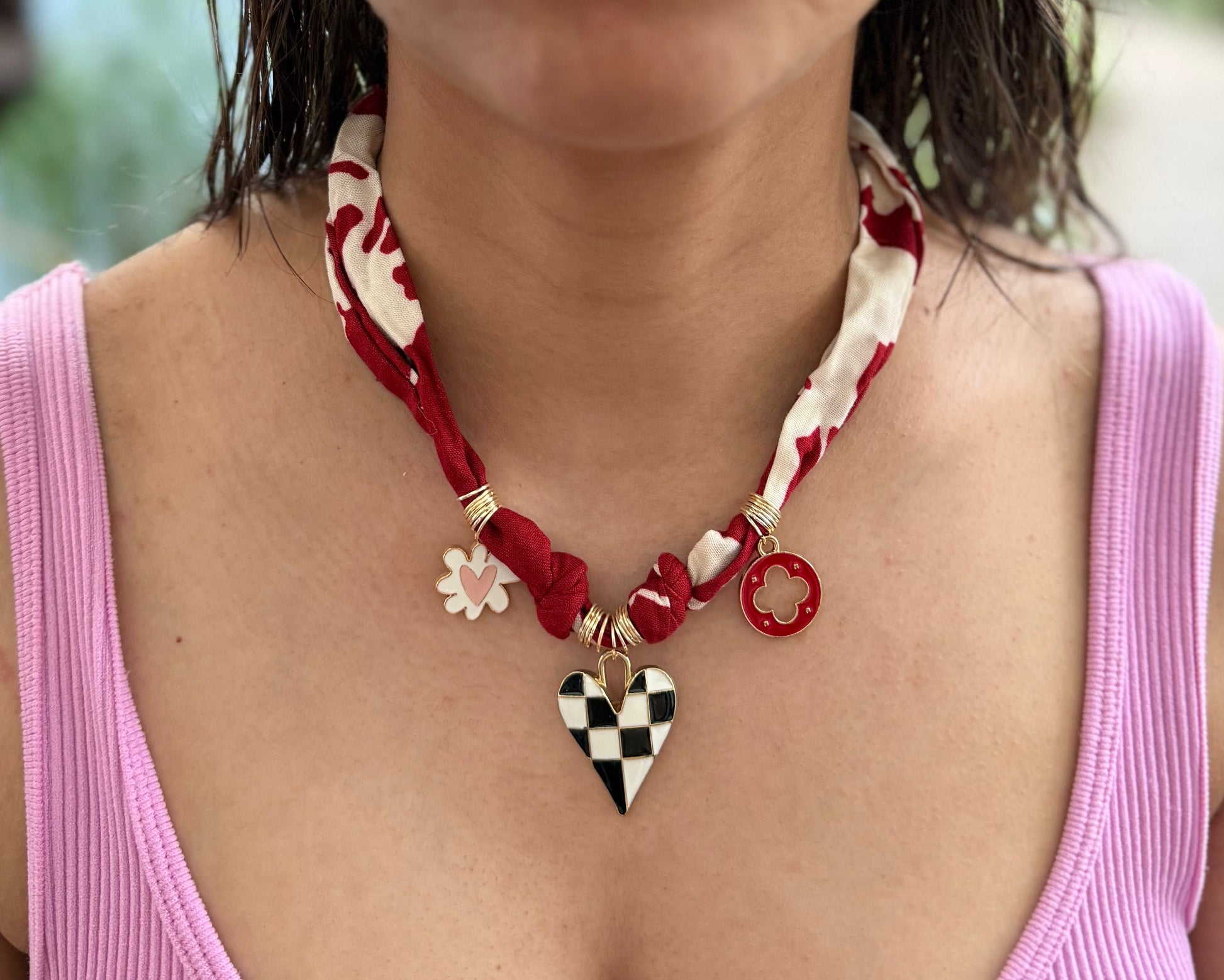 Add a touch of whimsy to your style with our Bandana Charm Necklace. Inspired by the classic bandana, these necklaces feature a charming design that's both playful and luxurious. With a lobster clasp for a perfect fit, they're the perfect accessory to take your look to the next level
