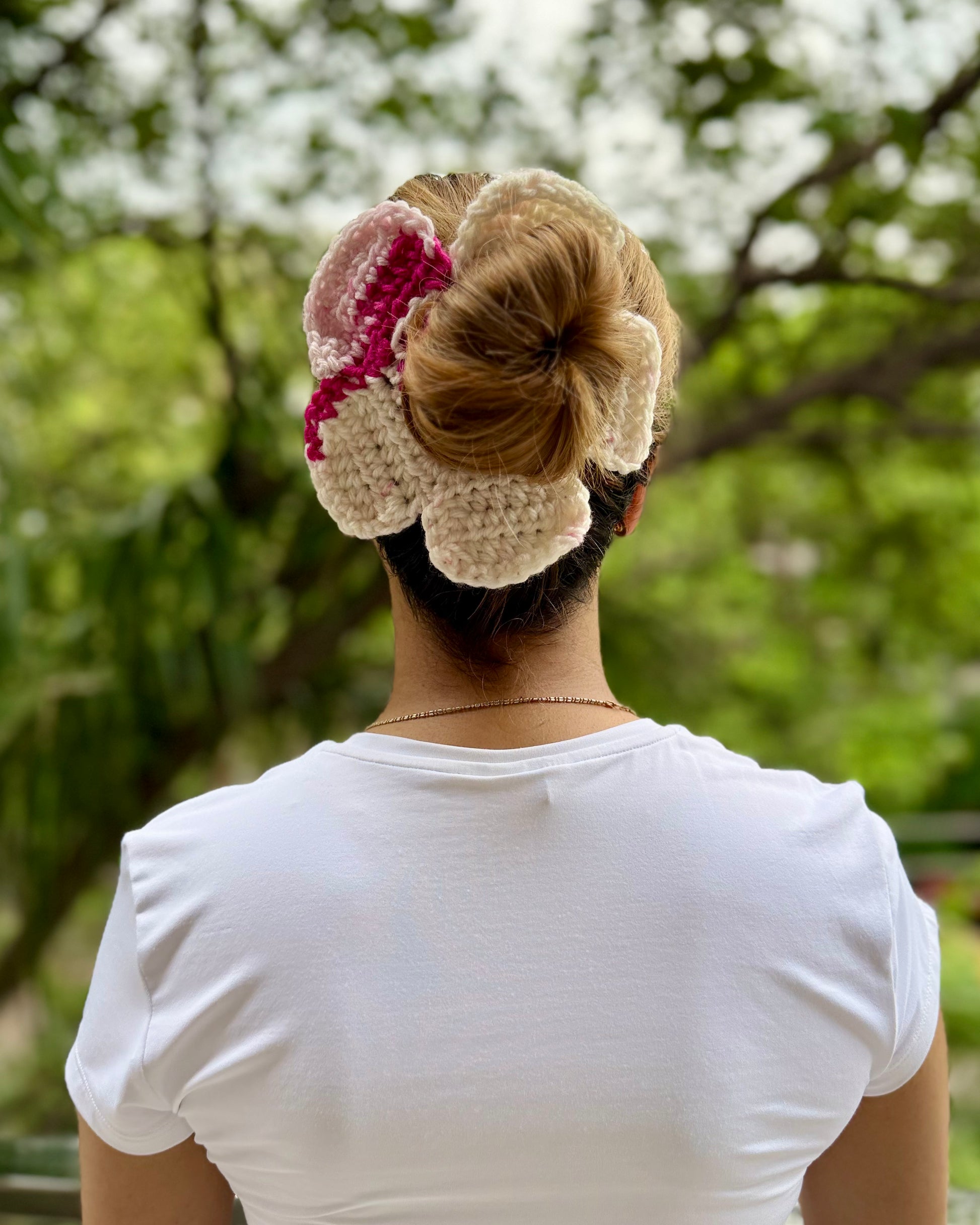 Elevate your look with our handmade crochet scrunchie. Soft, stylish, and perfect for any outfit