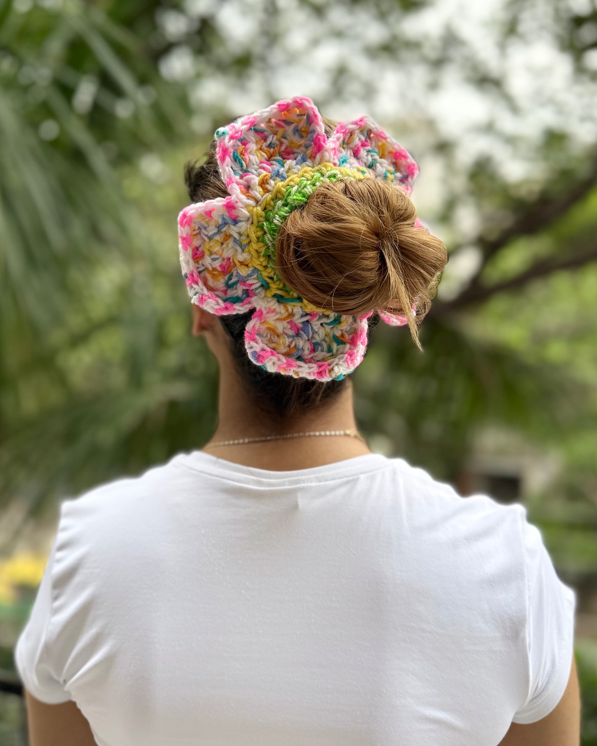 Elevate your look with our handmade crochet scrunchie. Soft, stylish, and perfect for any outfit
