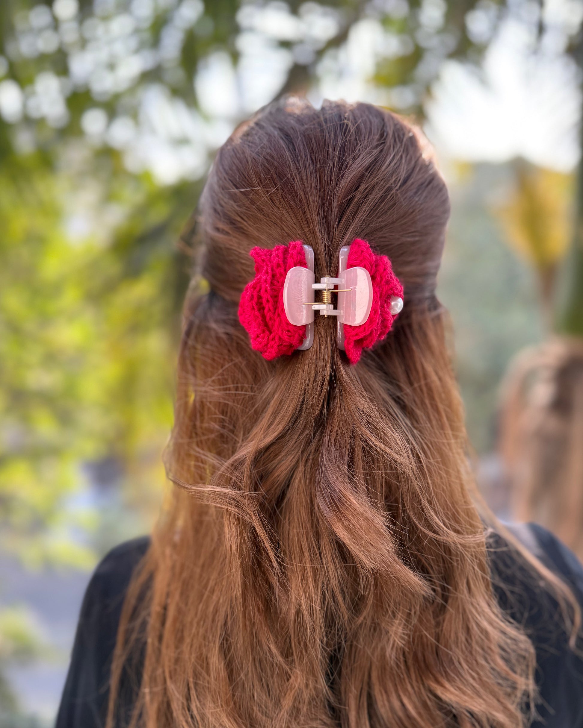 Get ready to elevate your hairstyle with our new Hair Claws. Featuring a beautiful handmade hair claw flower, these claws are perfect for adding a touch of sophistication to any outfit. Whether it's a casual day out or a special occasion, our hair claws are sure to make a statement.