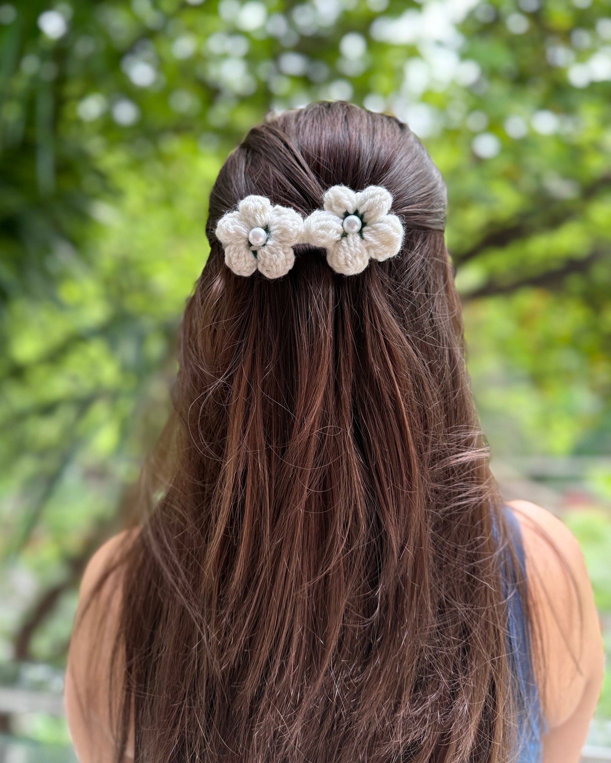 A delicate handmade crochet bow perfect to style from day to dinner.